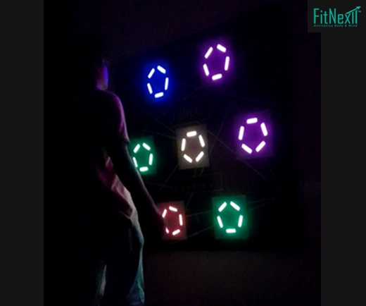 The wall is equipped with multiple touch-sensitive panels or sensors that respond instantly when a user taps them.