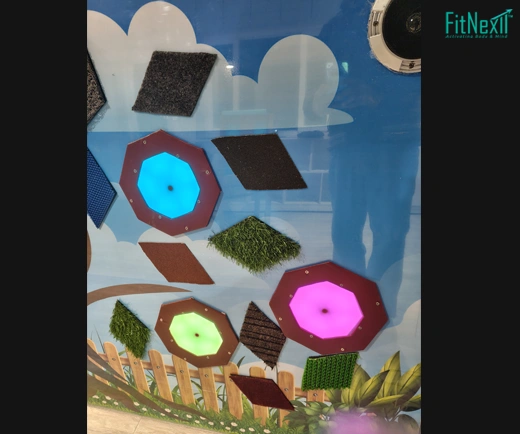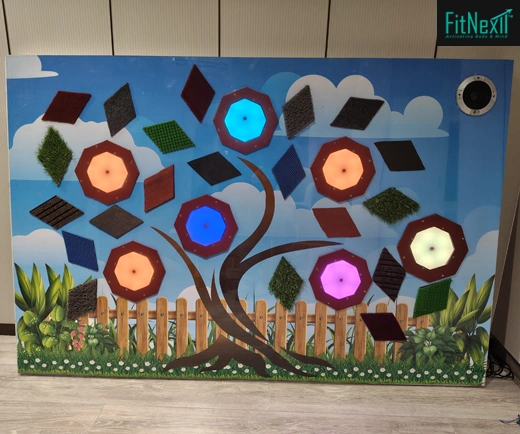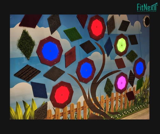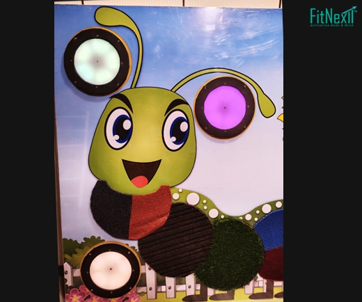 The design of the active sensory playwall has been kept attractive and kid friendly so that it is also a visual art in itself.