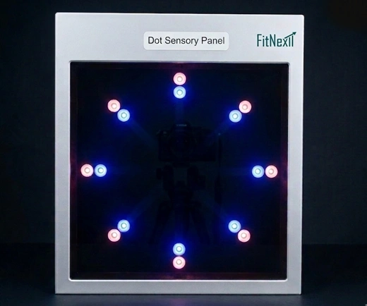 Dot Sensory panel is a dynamic visual sensory item with dotted lights creating mesmerizing effects. It is soothing and calming to look at and the visual experience is fun and relaxing at the same time. Fitted with interactive multi-functional buttons, it provides great interaction to change lighting effects and patterns thus making it also an item to learn cause and effect.